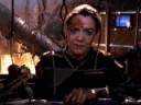 Reasons: A very intense scene with terrific music; Always-so-calm Ivanova cracking under pressure. Ivanova, "Can anyone help us? This is Commander Susan Ivanova of Babylon 5. To any ships in grid Epsilon. We are under attack. I repeat, we are under attack. The captain is dead, defense grid is down, they are boarding us, they are coming in all over the place. We've tried to evacuate as many as we can, and Garibaldi has rigged the fusion reactor, but.. my God, here they come. Switch to external cameras. They've got weapons lock. Here comes. Here comes!"
