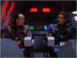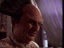 Reasons: extremely funny scene; Vir being the first guy to openly disapprove of Morden's Associates. Morden, "What do you want?" Vir, " I'd like to live just long enough to be there when they cut off your head and stick it on a pike as a warning to the next ten generations that some favors come with too high of a price. I want to look up at your lifeless eyes and wave like this" (waves in Morden's face). "Can you and your associates arrange that for me Mr. Morden?" Morden, "Here's the information Ambassador Mollari asked for. Give it to him when he arrives. You can go now." Vir (gets up and walks off, stops and turns back)., "Mr. Morden!" (waves at Morden then turns and leaves). |