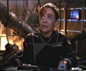 Reasons: A very intense scene with terrific music; Always-so-calm Ivanova cracking under pressure. Ivanova, "Can anyone help us? This is Commander Susan Ivanova of Babylon 5. To any ships in grid Epsilon. We are under attack. I repeat, we are under attack. The captain is dead, defense grid is down, they are boarding us, they are coming in all over the place. We've tried to evacuate as many as we can, and Garibaldi has rigged the fusion reactor, but.. my God, here they come. Switch to external cameras. They've got weapons lock. Here comes. Here comes!"