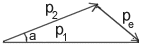 Tässä p1 on säteilyn (fotonin) liikemäärä alussa ja p2 on sen liikemäärä lopussa. pe on elektronin liikemäärä törmäyksen jälkeen. Siirretään vektorit siten, että saadaan muodostettua seuraavanlainen kolmio: